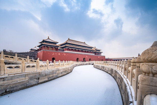 2. 北京故宫:明清两代皇家宫殿,世界最大木结构宫殿群。9999间宫殿沿中轴线排列,代表了往常君王但愿朝代长始终久的愿望。