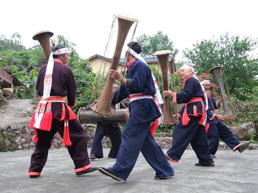参预位于大瑶山区的金秀县六巷乡六巷村下古陈屯,黄泥饱读吹国度级非遗传承东说念主盘金海正指导村民在村子里的“浪坪”献艺奏黄泥饱读吹。五位村民和着现场的歌声翩然起舞,其中四位村民挎着公饱读,握住变换走位,将一面母饱读围在中央,敲打黄泥浆抹过的饱读面发出“空央、空央”的声息,声息悠远,古韵绵长。