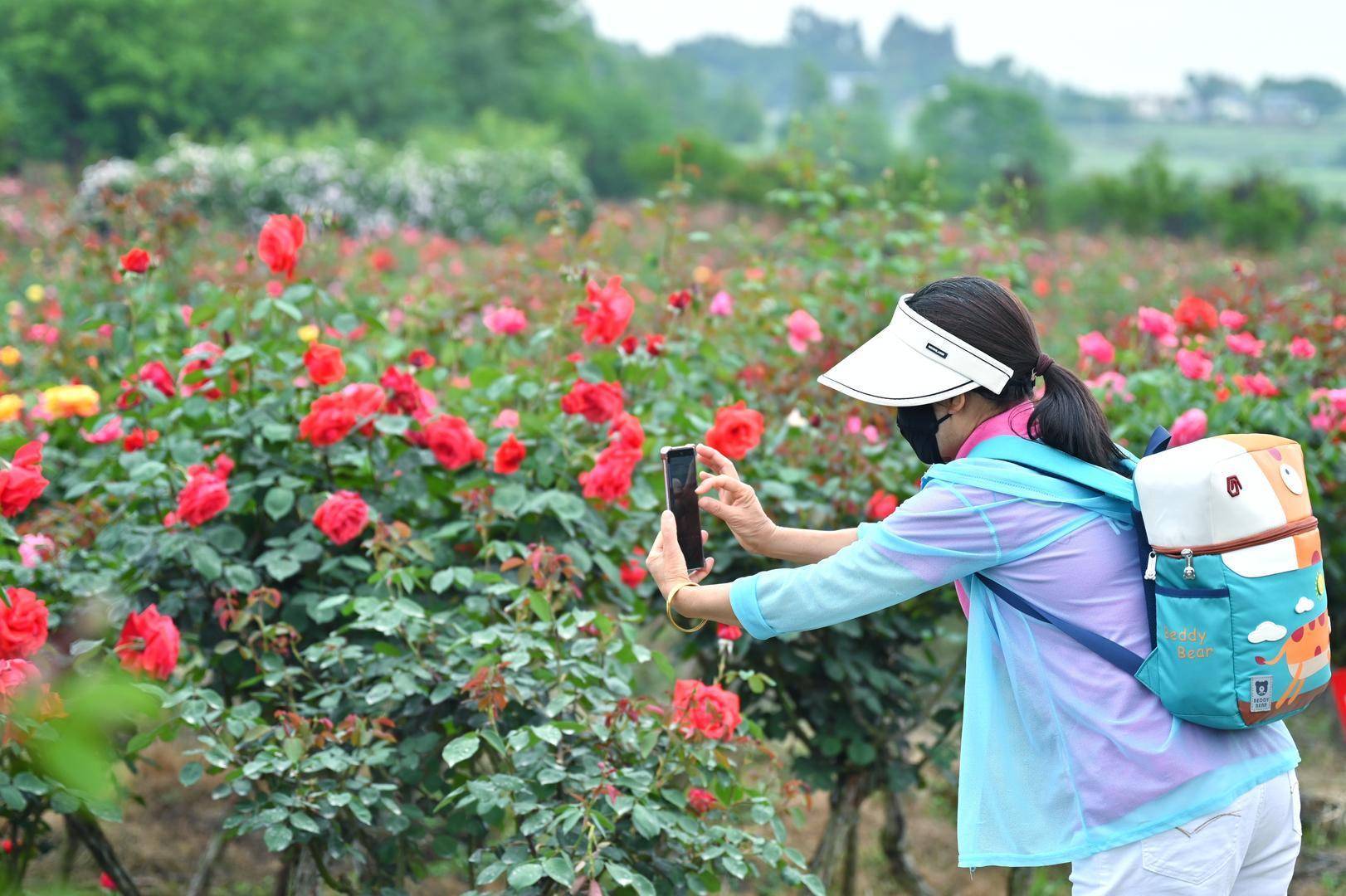 “咱们从网上看到这边玫瑰花开啦,相配漂亮,专诚从德阳过来拍照的!”4月28日,旅客张英与一又友一瞥,边赏玫瑰花海,边拍照贪恋。青海东谈主谭勇亦然通过集聚等渠谈获知玫瑰园信息。趁着在四川旅游时机,他与一又友报团实地来体验。