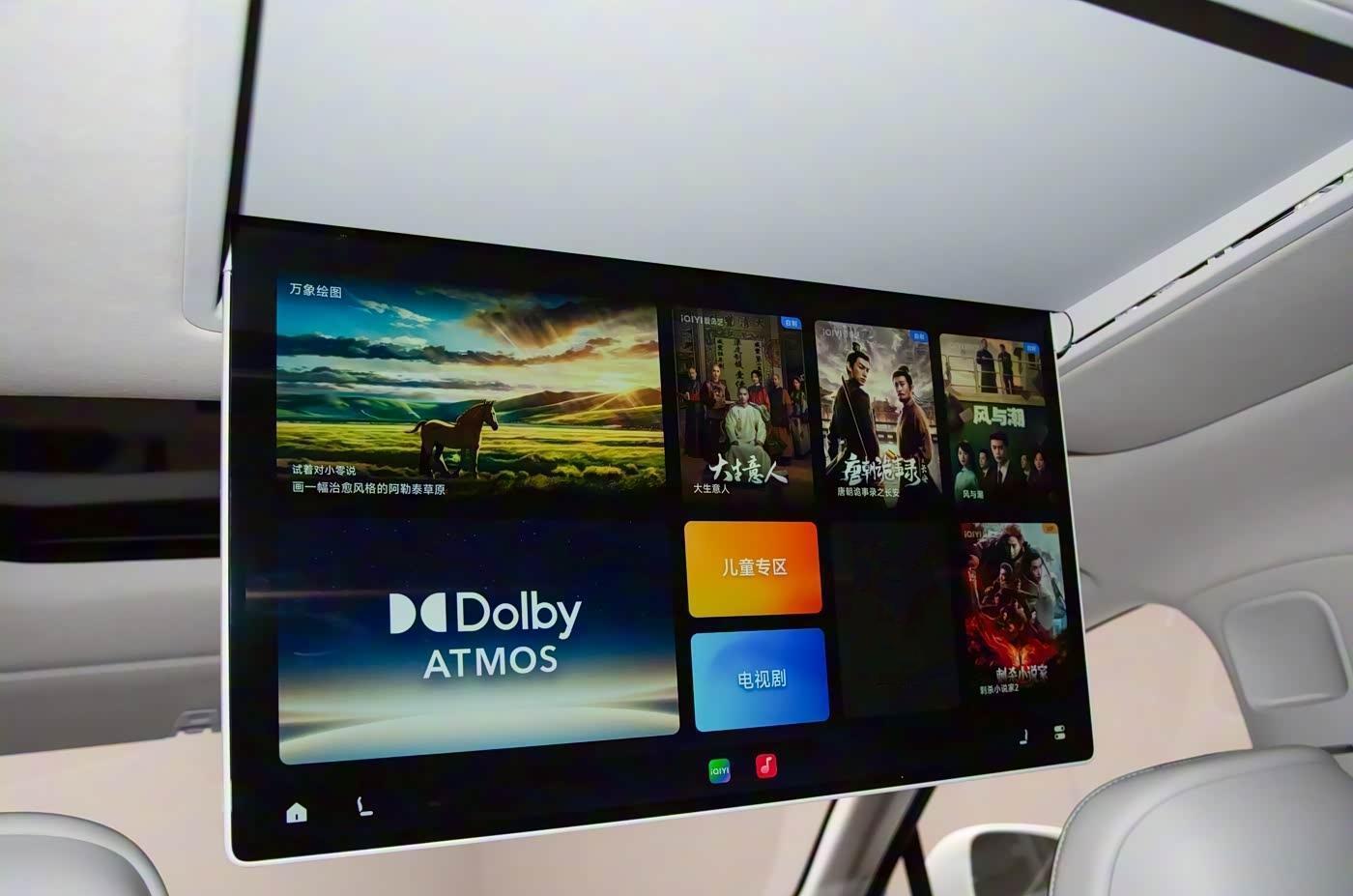 后排还配备了一块21.4英寸3K吸顶文娱屏幕,不错看电影哎、追剧、刷视频、K歌等,功能荒谬丰富。