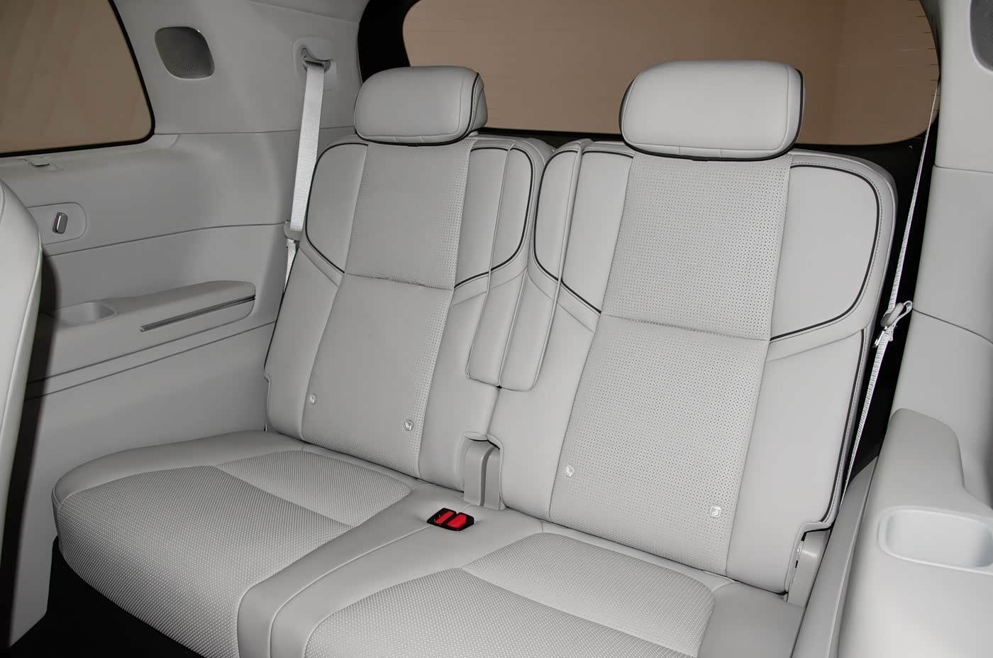 第三排座椅的腿部空间也不褊狭,毕竟到了大型SUV这个级别,车内空间等于它的“卖点”之一。具体来看,第三排座椅相沿靠背和洽,并具有加热和一键折叠功能。