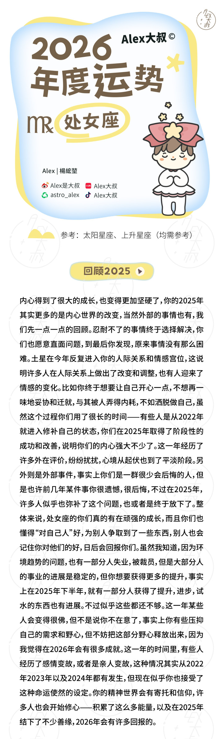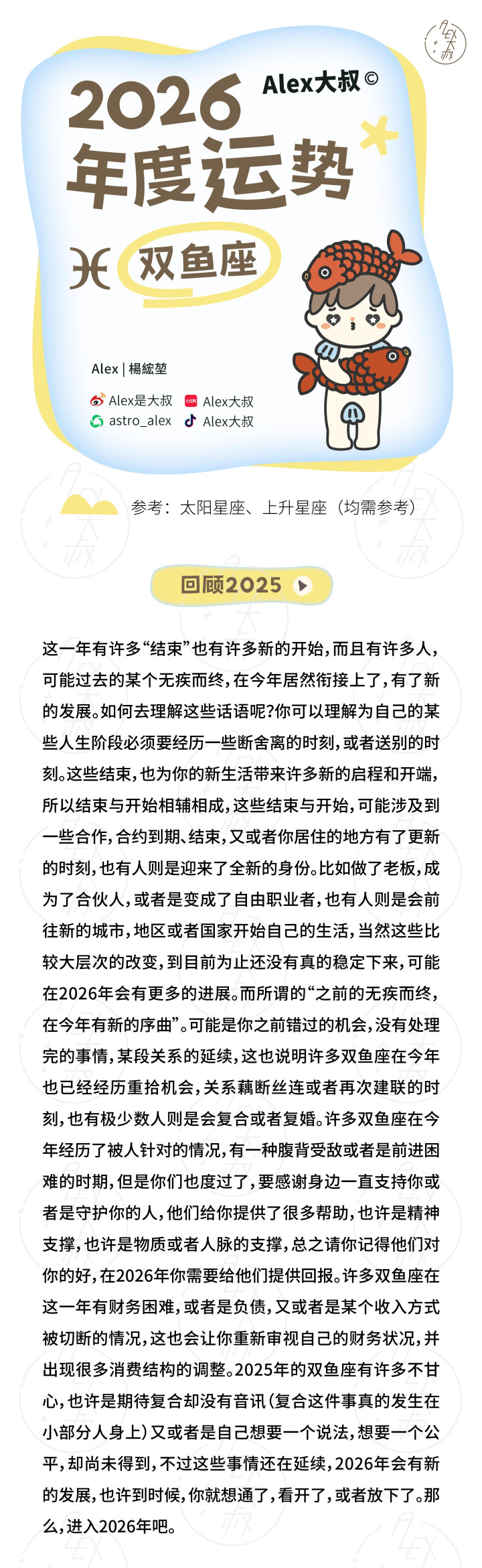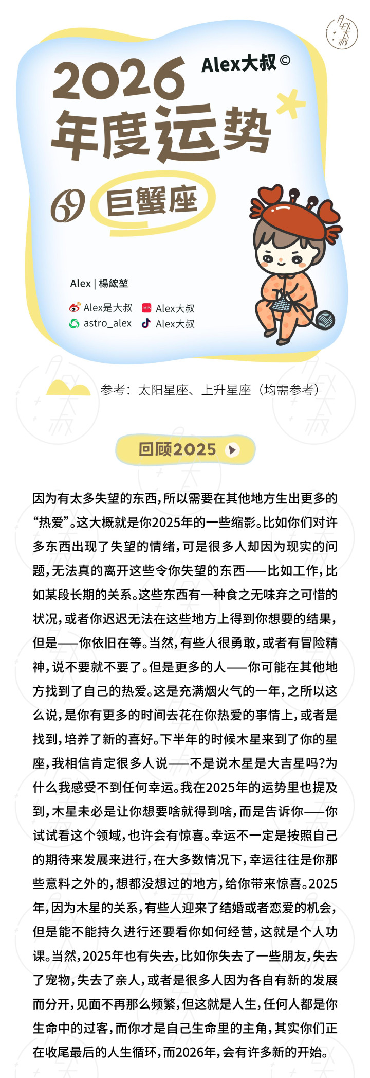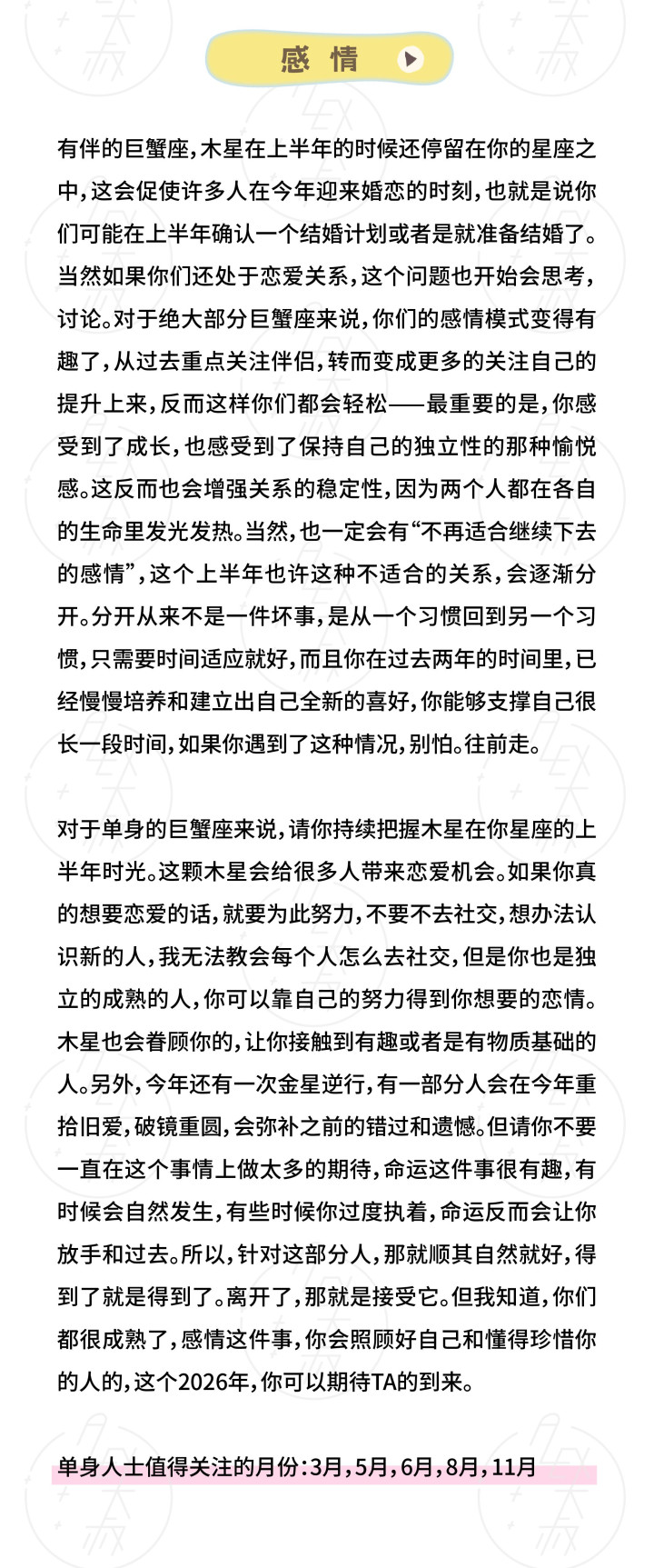 Ps: 各人运势无法对应到每一个东说念主,这是它的局限。我无法成为所谓的“指路明灯”。但淌若年运的这些残篇断简,能在某些技巧让你感受到共识、取得启发,并更好地活命在当下与翌日,那么它的意旨,照旧充足。